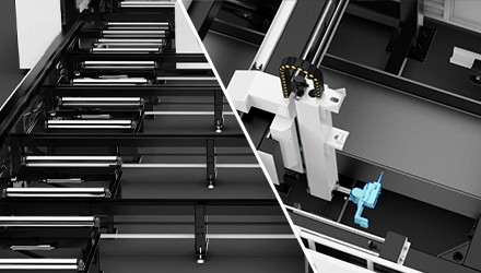 獨特的結構設計,支持原料的整根切割12米上 / 下料上料長度≤12500mm,實現零尾料切割,型材利用率高