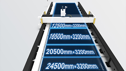 根據(jù)您的個性化需求,在 12 米基礎床身上,可隨心定制更大幅面,例如12 + 2Nm,超大幅面設計,安全耐用,性價比超高!